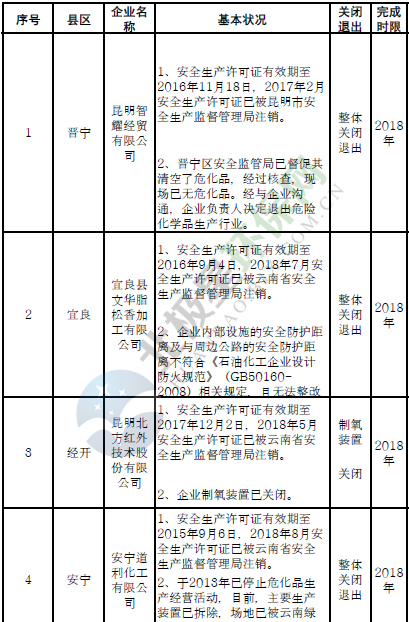 日前云南省應(yīng)急管理廳發(fā)布了印發(fā)危險(xiǎn)化學(xué)品安全工程三年行動(dòng)計(jì)劃有關(guān)企業(yè)名單,明確關(guān)閉退出、就地改造、綜合整治的危險(xiǎn)化學(xué)品生產(chǎn)(儲(chǔ)存)企業(yè)名單。對(duì)91戶危險(xiǎn)化學(xué)品生產(chǎn)(儲(chǔ)存)企業(yè)和部分生產(chǎn)裝置,雖不在城鎮(zhèn)人口密集區(qū),但由于不符合產(chǎn)業(yè)政策、不具備基本安全生產(chǎn)條件且無(wú)法整改的,實(shí)施關(guān)閉退出。對(duì)37戶內(nèi)部安全...