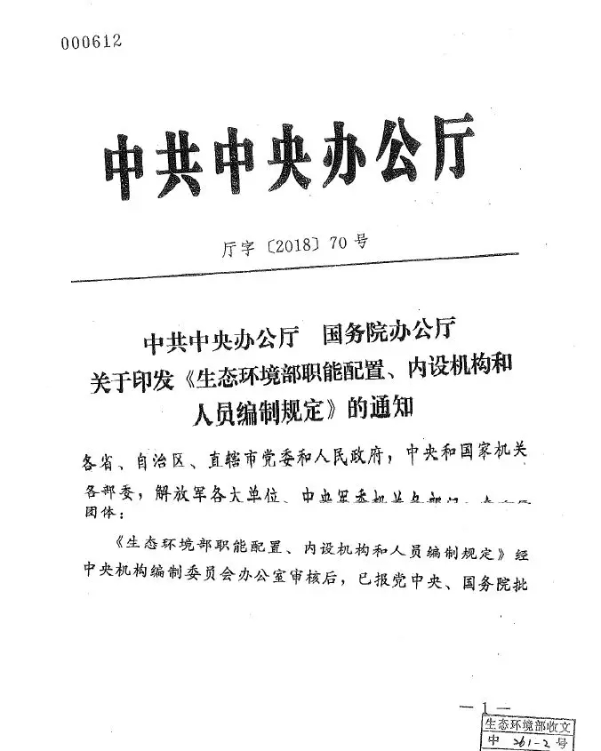 國務(wù)院各機構(gòu)的“三定”(定職能、定機構(gòu)、定編制)方案近日陸續(xù)出臺。第一財經(jīng)記者獲悉,生態(tài)環(huán)境部的“三定”方案也有望在近期正式對外公布。來源:第一財經(jīng)據(jù)有關(guān)人士透露,這一方案在原環(huán)境保護部“三定”方案基礎(chǔ)上,有了很多不同。明確生態(tài)環(huán)境部是國務(wù)院組成部門,為正部級,對外保留國家核安全局牌子,加掛國家消耗...