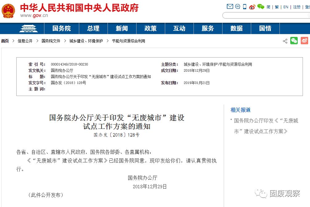 近日國務(wù)院辦公廳印發(fā)“無廢城市”建設(shè)試點工作方案的通知,“無廢城市”是以創(chuàng)新、協(xié)調(diào)、綠色、開放、共享的新發(fā)展理念為引領(lǐng),通過推動形成綠色發(fā)展方式和生活方式,持續(xù)推進固體廢物源頭減量和資源化利用,最大限度減少填埋量,將固體廢物環(huán)境影響降至最低的城市發(fā)展模式,也是一種先進的城市管理理念。開展“無廢城市”...