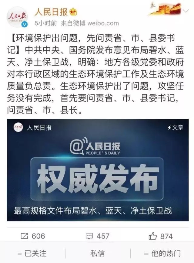 昨日,人民日?qǐng)?bào)發(fā)布《這件事,習(xí)近平視為“根本大計(jì)”》、《環(huán)境保護(hù)腰桿硬起來》、《中央環(huán)保督察嚴(yán)禁“表面整改”》等數(shù)篇文章。而近日,中央紀(jì)委則首次集中通報(bào)了生態(tài)責(zé)任追究的典型問題。在第47個(gè)世界環(huán)境日,以如此猛烈的方式表達(dá)對(duì)環(huán)境的關(guān)注,無疑在釋放嚴(yán)肅查處破壞環(huán)境違紀(jì)違法行為的強(qiáng)烈信號(hào),表明了中央對(duì)治理...