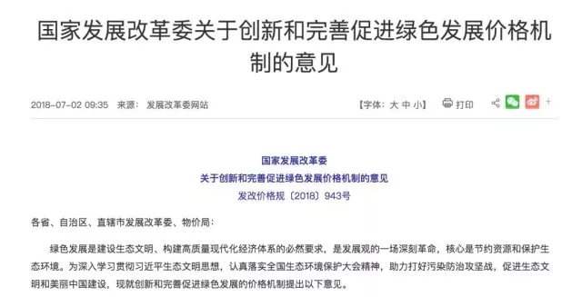 7月2日,國(guó)家發(fā)改委發(fā)布《關(guān)于創(chuàng)新和完善促進(jìn)綠色發(fā)展價(jià)格機(jī)制的意見》(下稱《意見》),提出到2020年,有利于綠色發(fā)展的價(jià)格機(jī)制、價(jià)格政策體系要基本形成,促進(jìn)資源節(jié)約和生態(tài)環(huán)境成本內(nèi)部化的作用明顯增強(qiáng);到2025年,適應(yīng)綠色發(fā)展要求的價(jià)格機(jī)制要更加完善,并落實(shí)到全社會(huì)各方面各環(huán)節(jié)。來源:華夏時(shí)報(bào)記者...