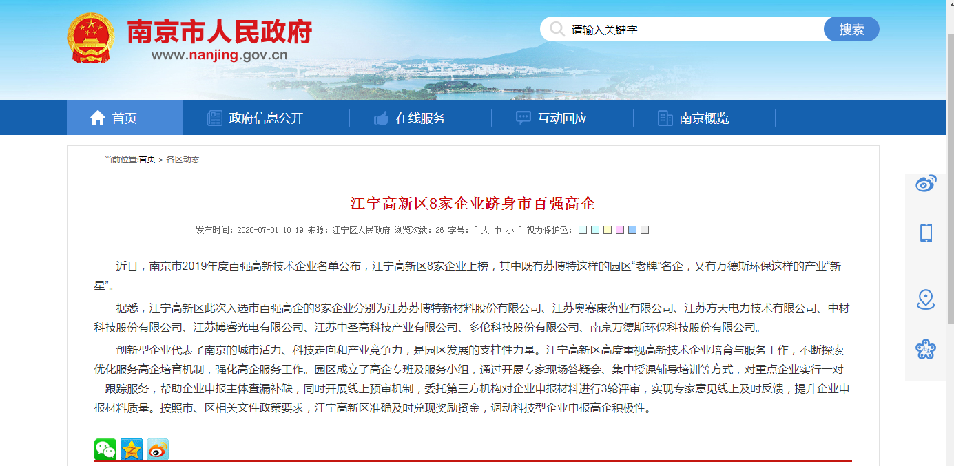 ——新的榮譽(yù)、新的“百?gòu)?qiáng)”、新的起航,萬(wàn)德斯入選“江蘇省百?gòu)?qiáng)創(chuàng)新型企業(yè)”、“南京市百?gòu)?qiáng)高新技術(shù)企業(yè)”近日,江蘇省科技情報(bào)研究與江蘇省科技發(fā)展戰(zhàn)略研究院分別發(fā)布了“南京市2019年度百?gòu)?qiáng)高新技術(shù)企業(yè)”名單、“2019年江蘇省百?gòu)?qiáng)創(chuàng)新型企業(yè)”名單,南京萬(wàn)德斯環(huán)??萍脊煞萦邢薰就瑫r(shí)位列兩張榜單之中,成為...