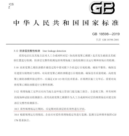 2020年6月1日《危險廢物填埋污染控制標準》修訂版GB18598-2019正式實施,針對防滲檢測提出了具體要求如下: 填埋場鋪設高密度聚乙烯(HDPE)土工膜是常見的污染控制措施,HDPE膜是隔絕污染物的主要屏障,在整個污染控制措施的重要性不言而喻。在HDPE膜鋪設和填埋場的運行過程中,HDPE膜...